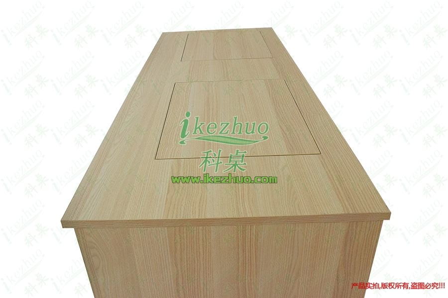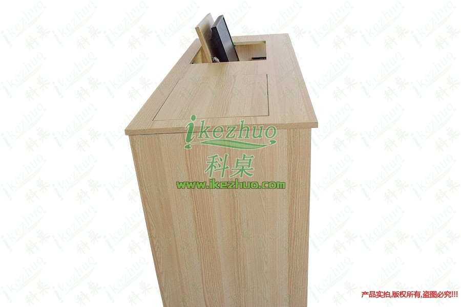 4、當(dāng)不使用顯示器時(shí),可手動(dòng)按下顯示器翻蓋面板至桌面平整,顯示器自動(dòng)鎖住隱藏在桌子內(nèi)部,此時(shí)整個(gè)桌面成一個(gè)平面狀態(tài)