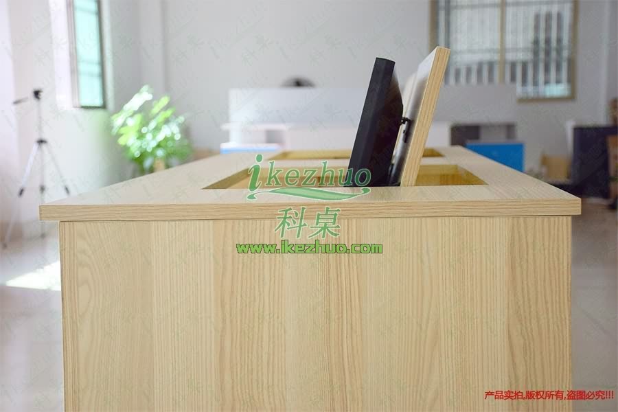 當(dāng)需要使用顯示器時(shí)輕按前端桌面板隱藏在桌子內(nèi)部的顯示器會(huì)自動(dòng)從桌子下面升到桌面翻轉(zhuǎn)到合適角度。當(dāng)不使用顯示器時(shí),可手動(dòng)按下顯示器翻蓋面板至桌面平整,顯示器自動(dòng)鎖住隱藏在桌子內(nèi)與桌面保持平整一致。起到防塵,防盜,保持桌面平整美觀。使用方便,手動(dòng)控制,翻轉(zhuǎn)自如。