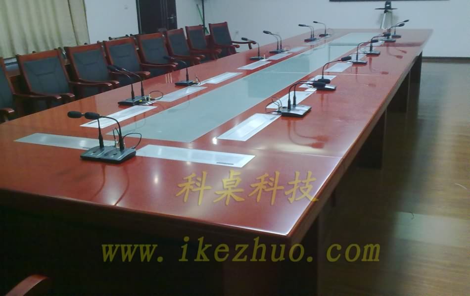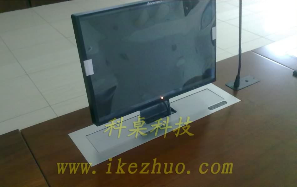 面、當(dāng)不使用顯示器時,升降機(jī)自動下降,顯示器隱藏在會議桌內(nèi),起到