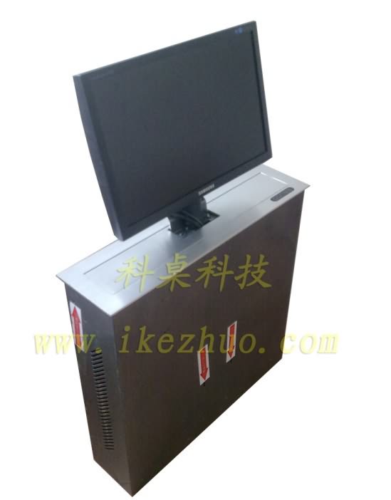 從會議桌下面升到桌面、當(dāng)不使用顯示器時,升降機自動下降,顯示器隱藏在會議桌內(nèi),起到防塵,防盜,保持桌面平整美觀。